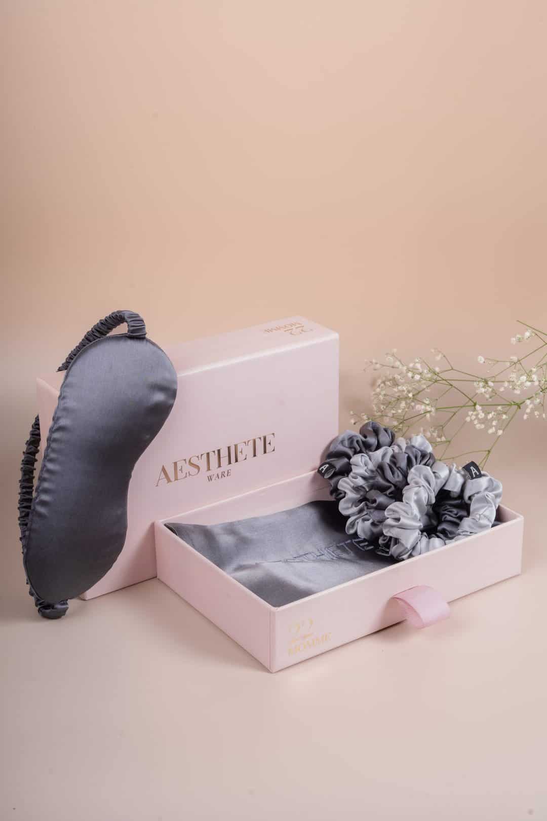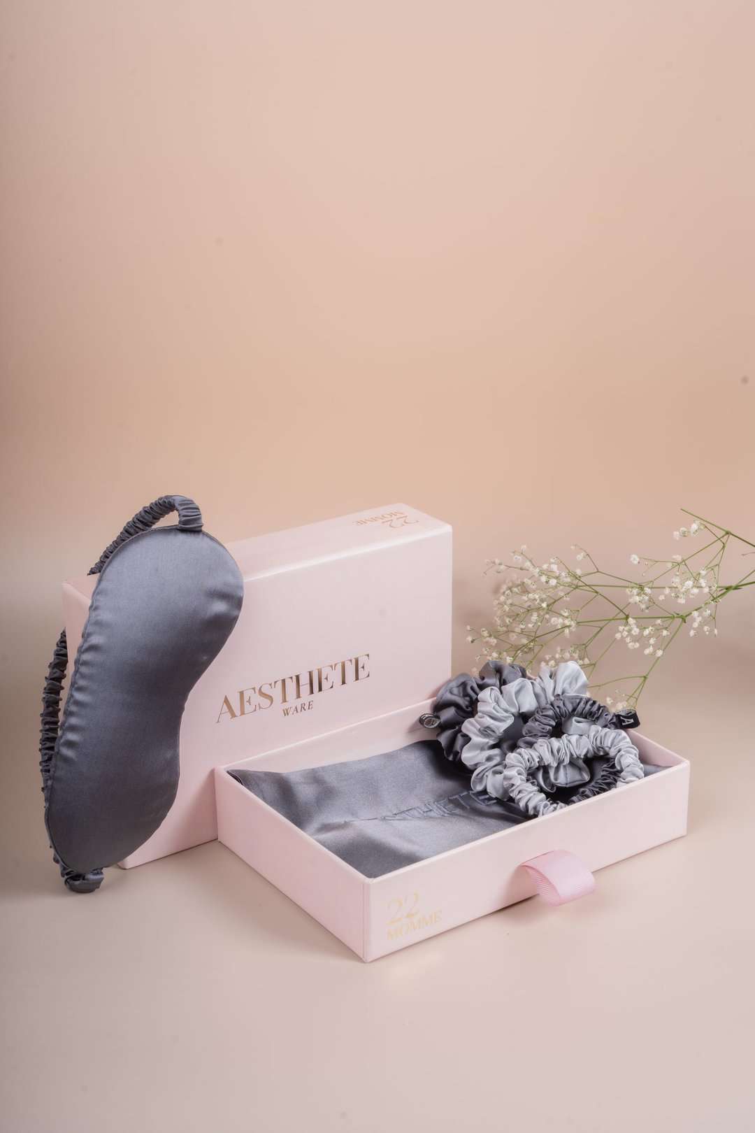 Elevate Your Gifting Game with Aesthete Ware. Our Dream Sets showcase our signature silk pillowcases, along with a matching eye mask & scrunchies. Premium essentials designed for beauty sleep.