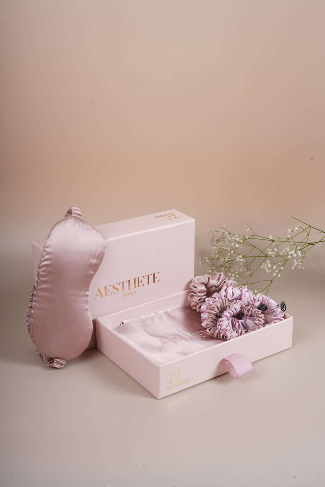 Elevate Your Gifting Game with Aesthete Ware. Our Dream Sets showcase our signature silk pillowcases, along with a matching eye mask & scrunchies. Premium essentials designed for beauty sleep.