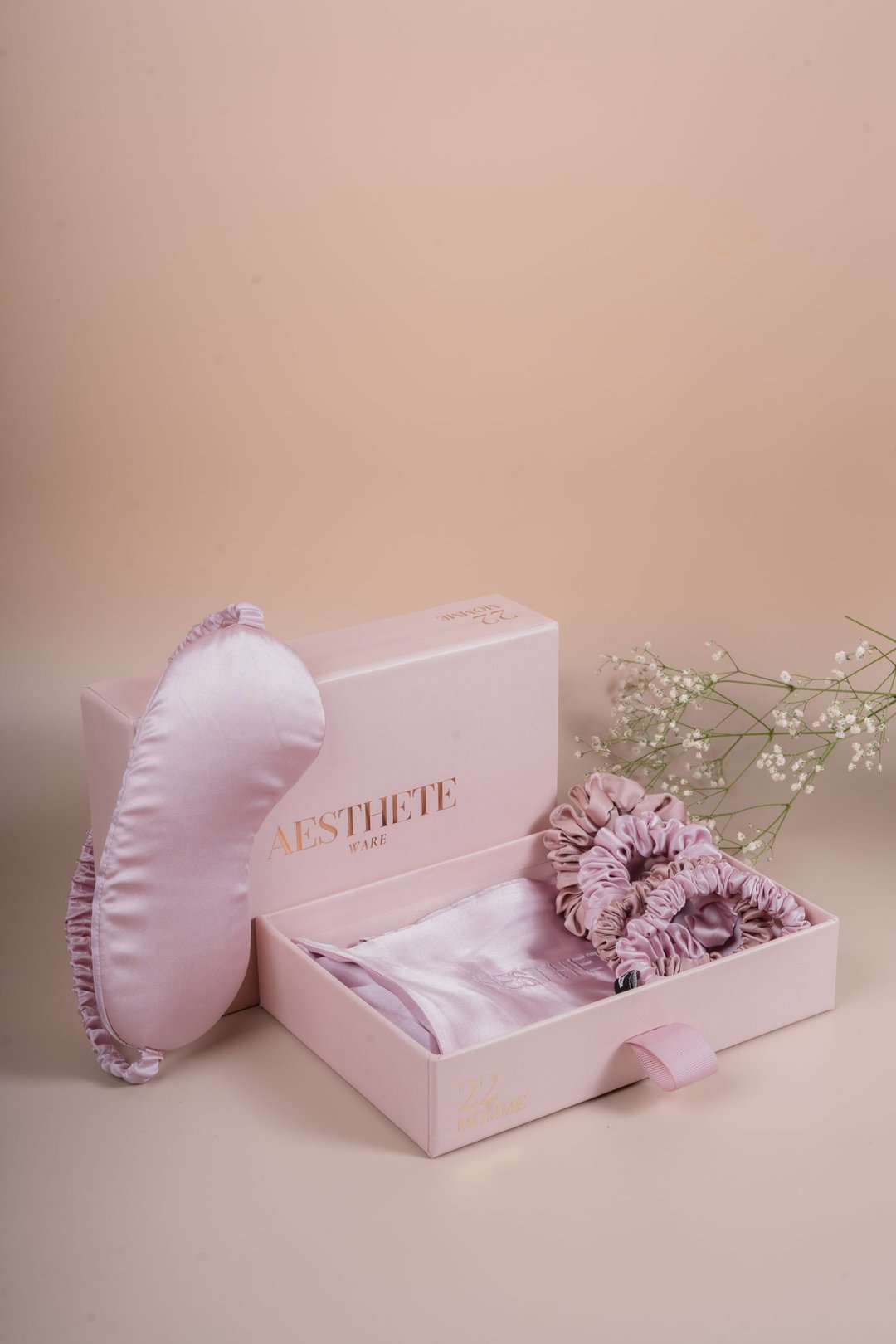 Elevate Your Gifting Game with Aesthete Ware. Our Dream Sets showcase our signature silk pillowcases, along with a matching eye mask & scrunchies. Premium essentials designed for beauty sleep.